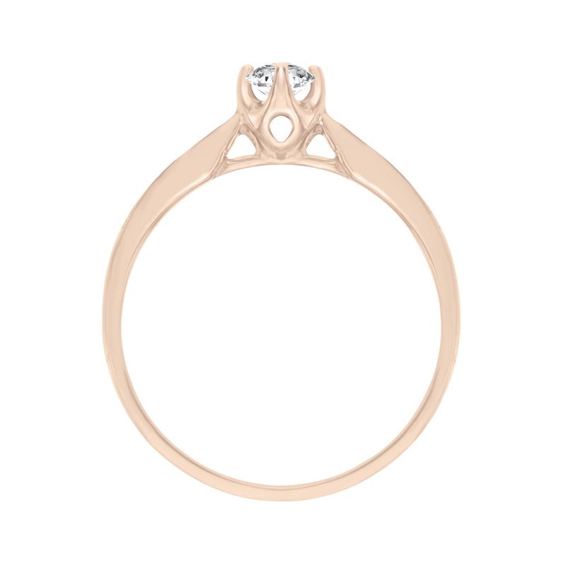 Anillo de compromiso Florenza, clásico y elegante, con inspiración de realeza. Diamante central corte brillante redondo con 20 puntos de diamante, acompañado con 5 puntos de diamante laterales. 25 puntos totales. Claridad SI, Color G-H. Acabado brillante.