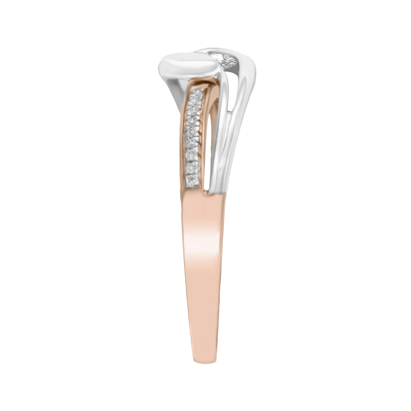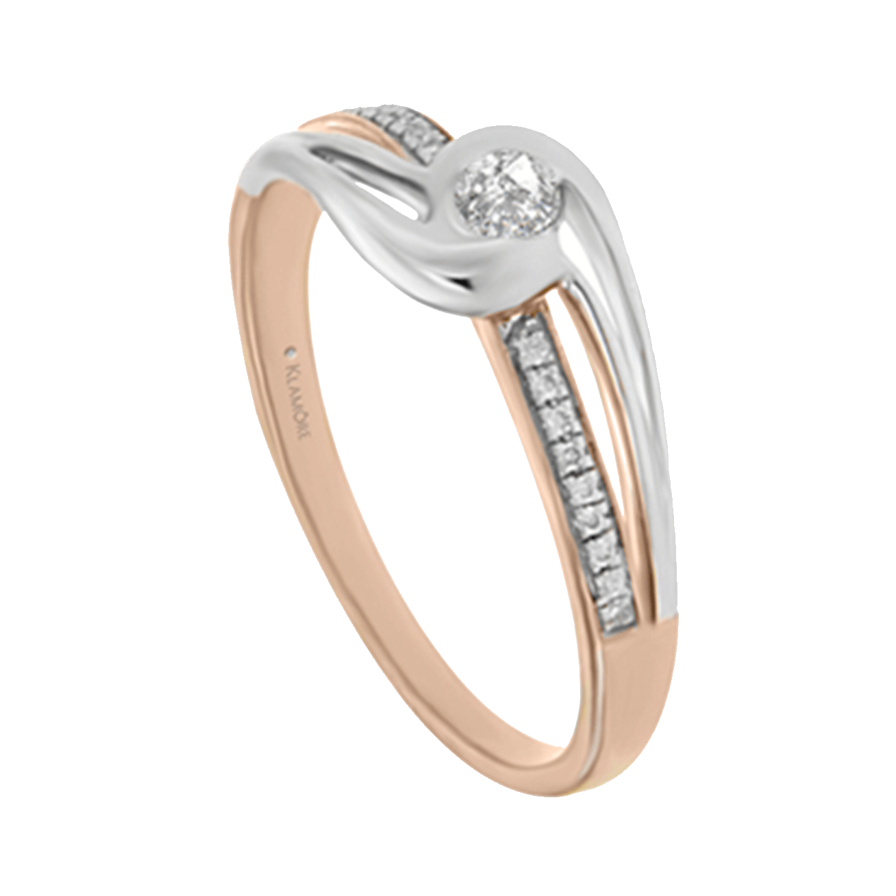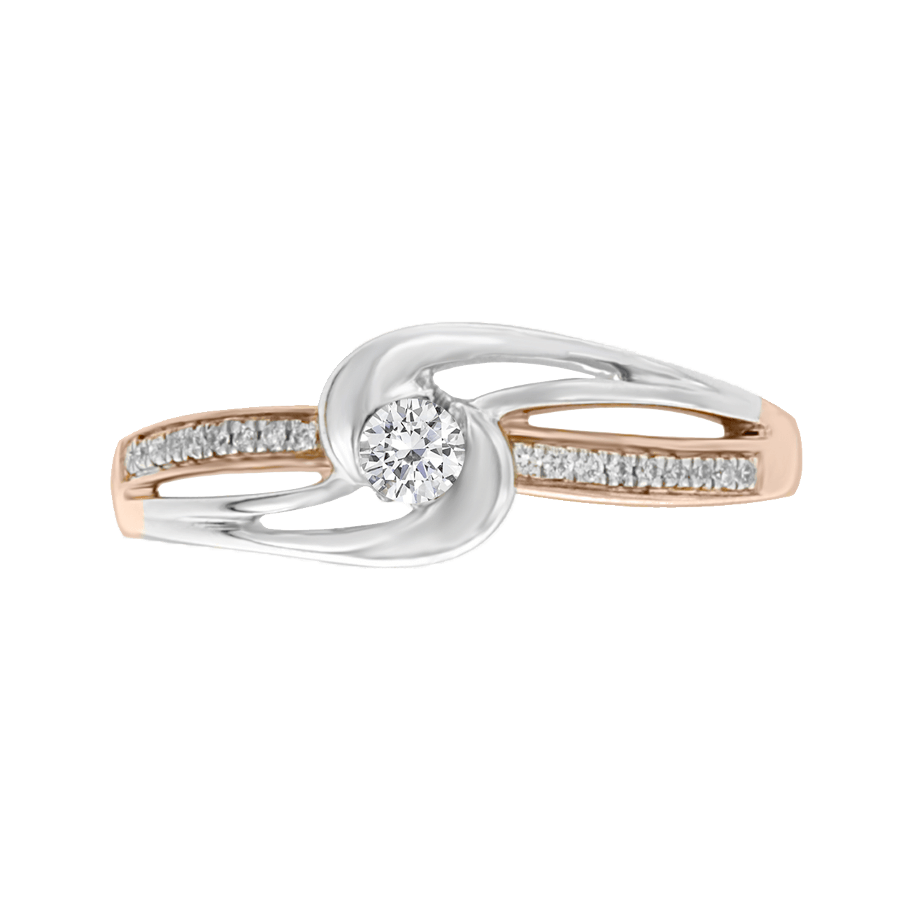 Anillo de compromiso Byanca. Su singular diseño aporta movimiento y realza al diamante central corte brillante redondo con 6 puntos de diamante natural acompañado por 7 puntos laterales de diamante natural. 24 puntos totales. Acabado brillante y platinado.