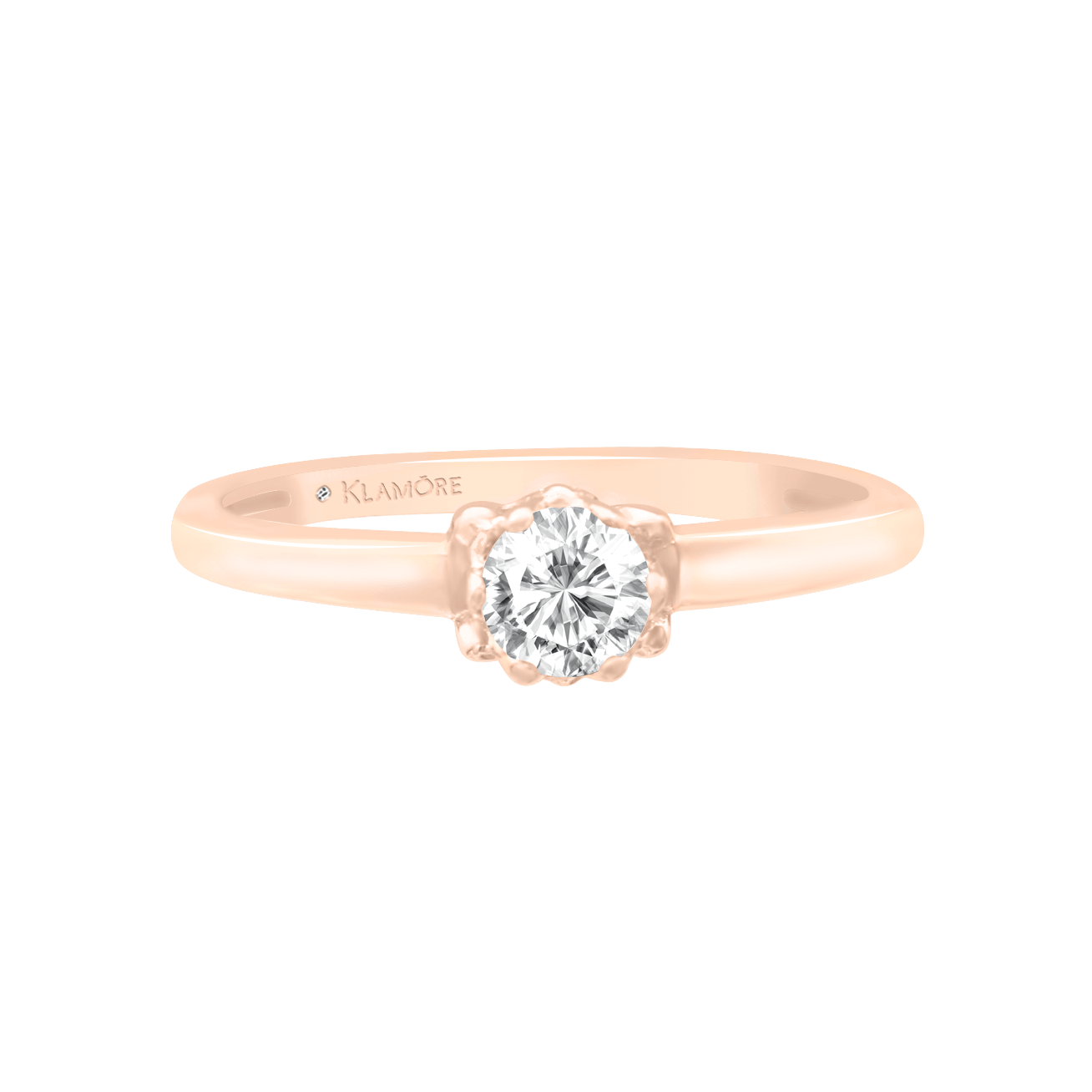 Anillo de compromiso Eximia, ideal para quienes buscan la belleza de lo tradicional con un toque de calidez y estilo. Diamante central corte brillante con 30 puntos de diamante redondo acompañado por 1.5 puntos de diamante laterales. 31.5 puntos totales.