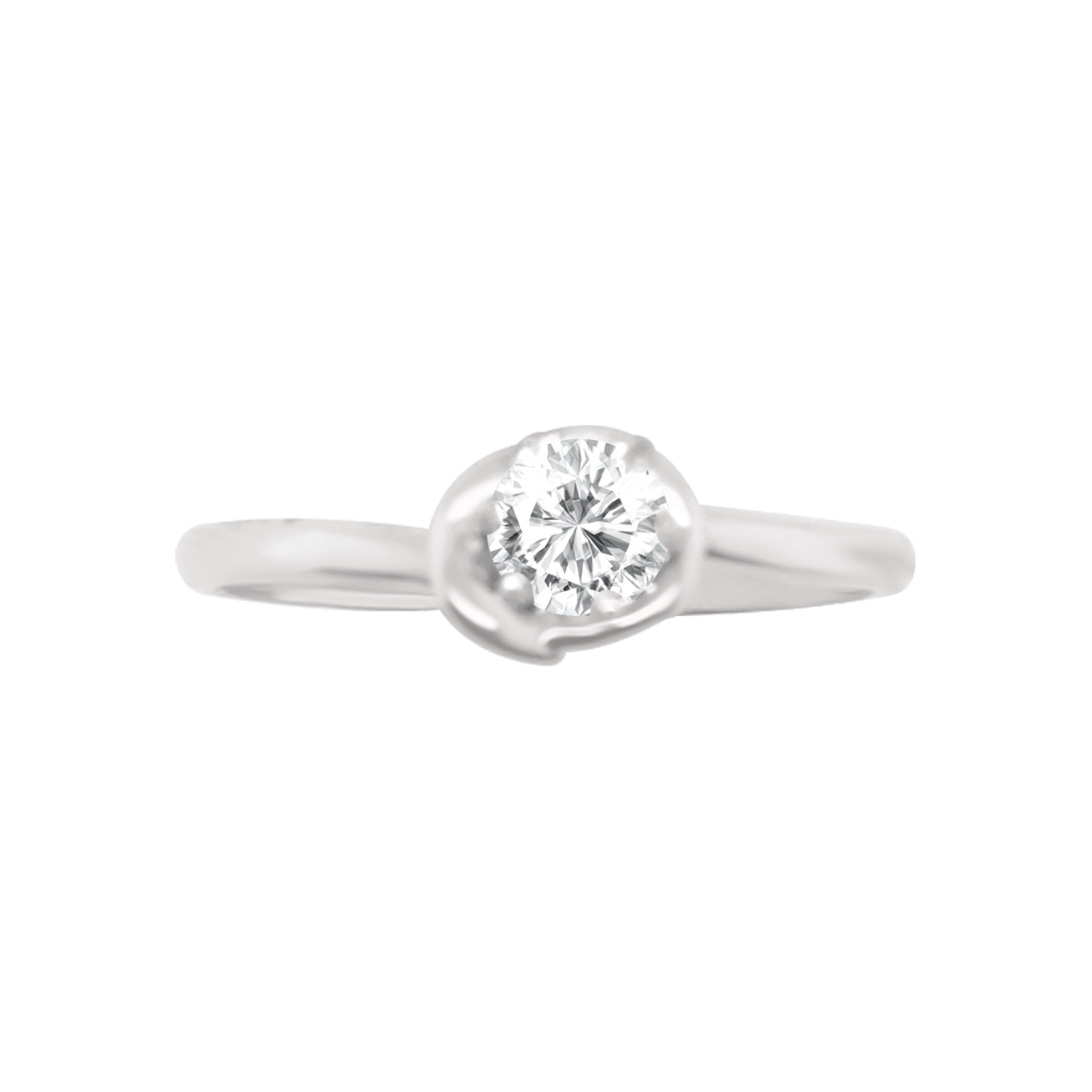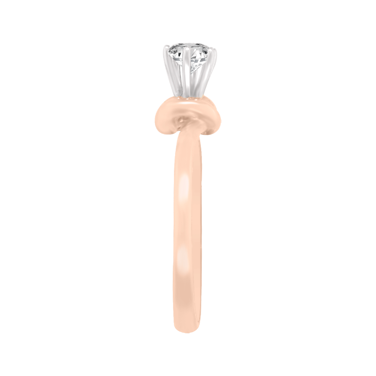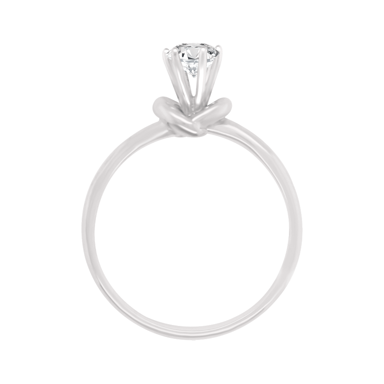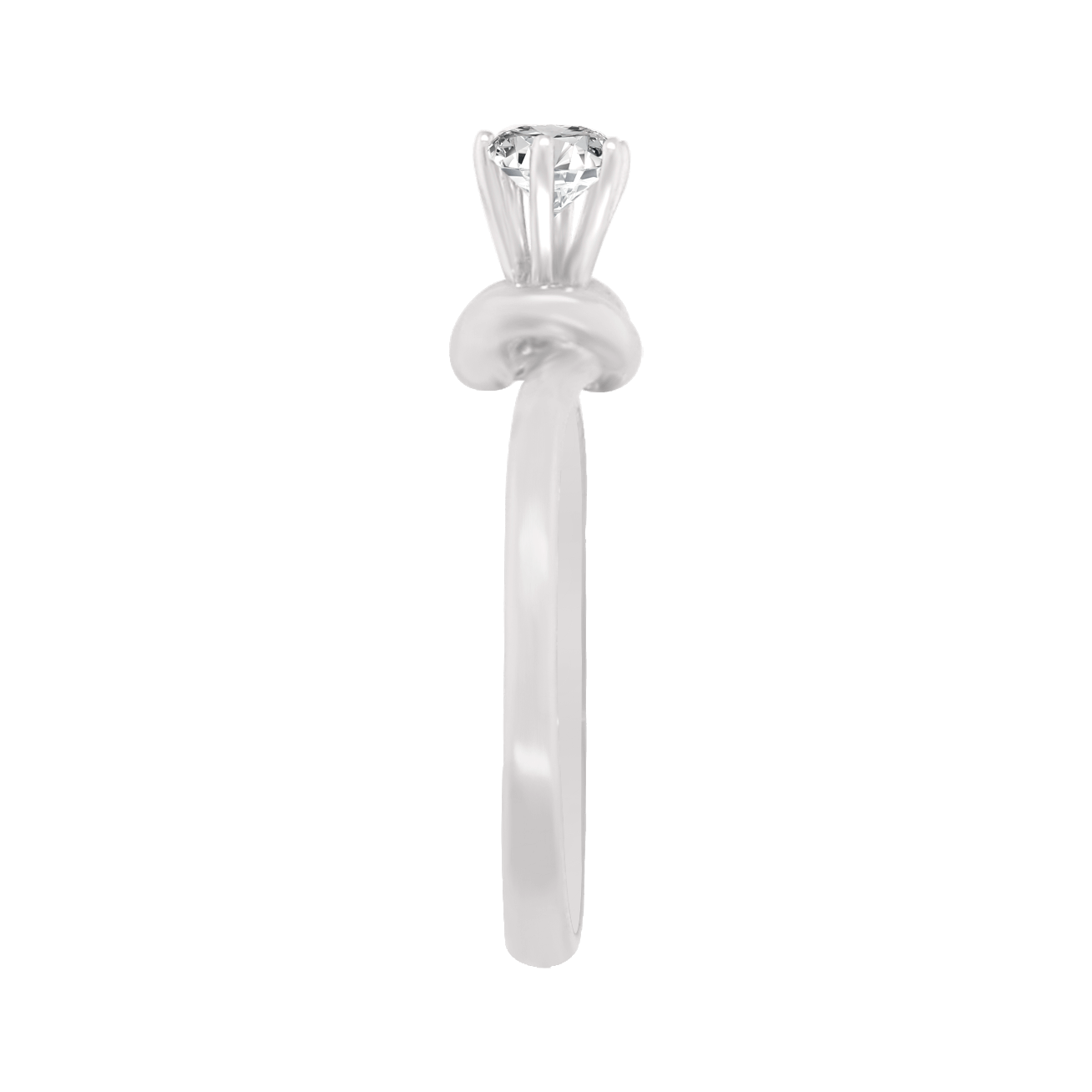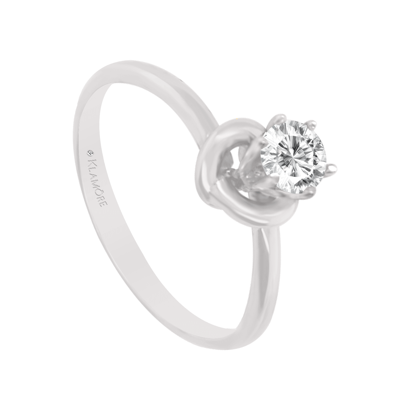 Anillo de compromiso Legende. Sal de lo ordinario con un diseñado con nudo que simbolizara la fortaleza del amor. Diamante natural central corte brillante redondo con 30 puntos de diamante. Acabado brillante.