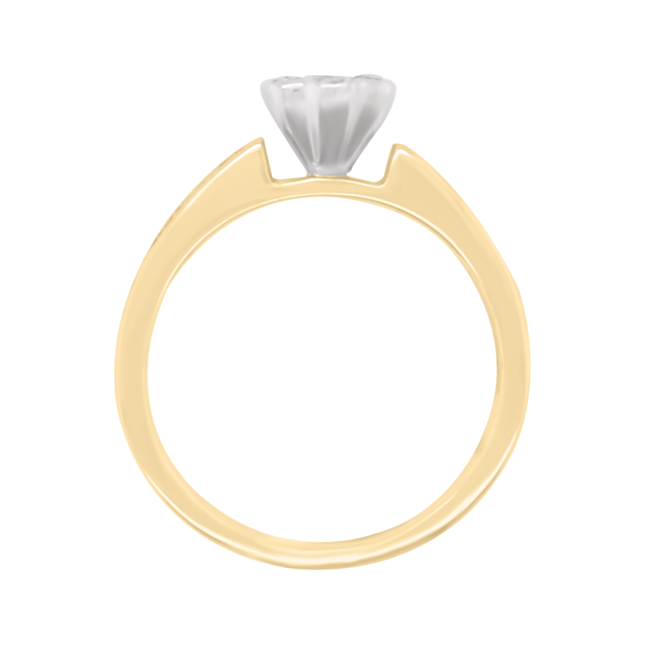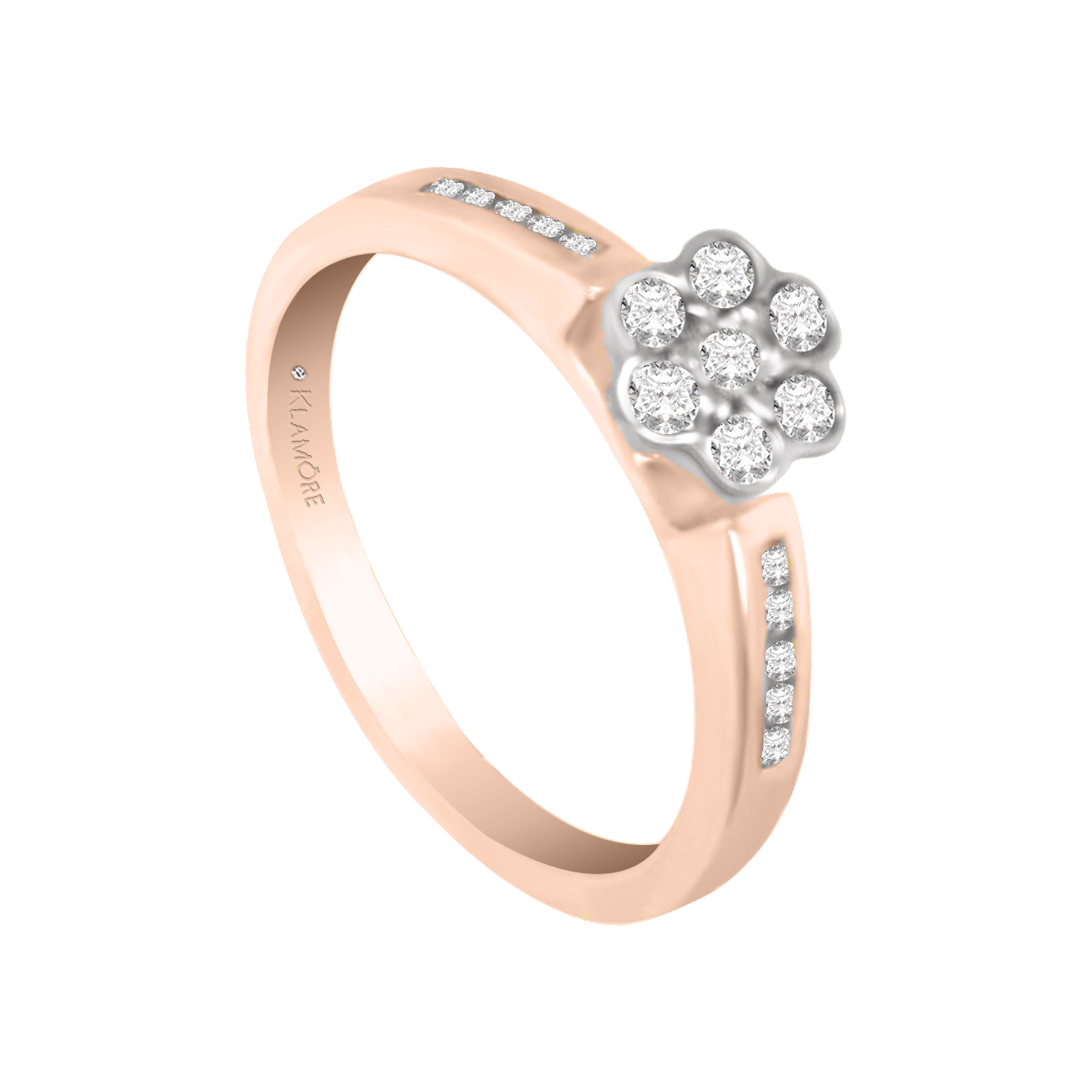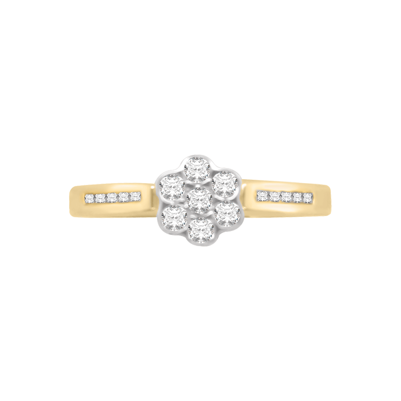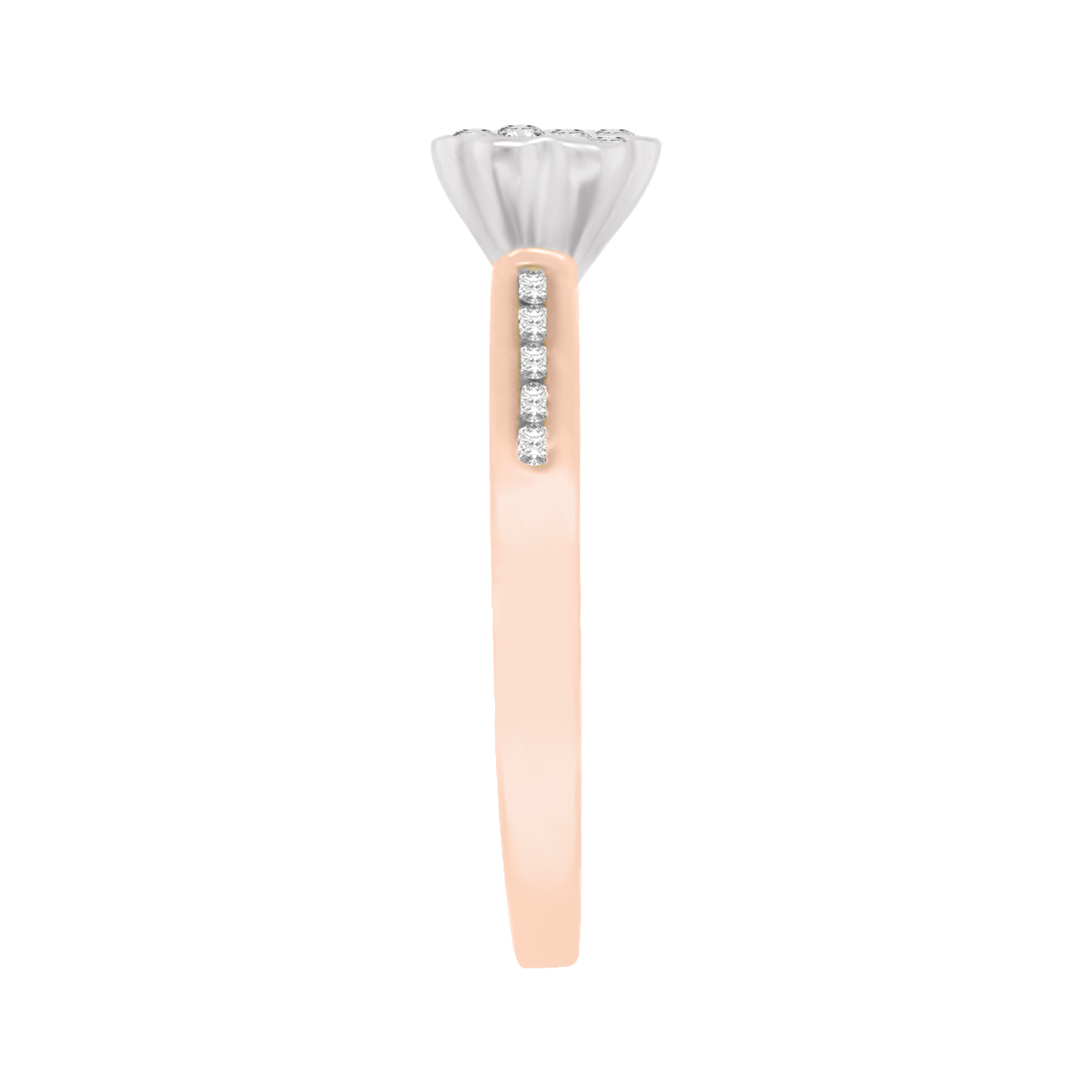 Anillo de compromiso Corintio. Con este exclusivo diseño tipo roseta sal de lo ordinario. Diamante natural central redondo 23 puntos acompañado de 10 puntos laterales. 33 puntos de diamante totales. Acabado brillante.