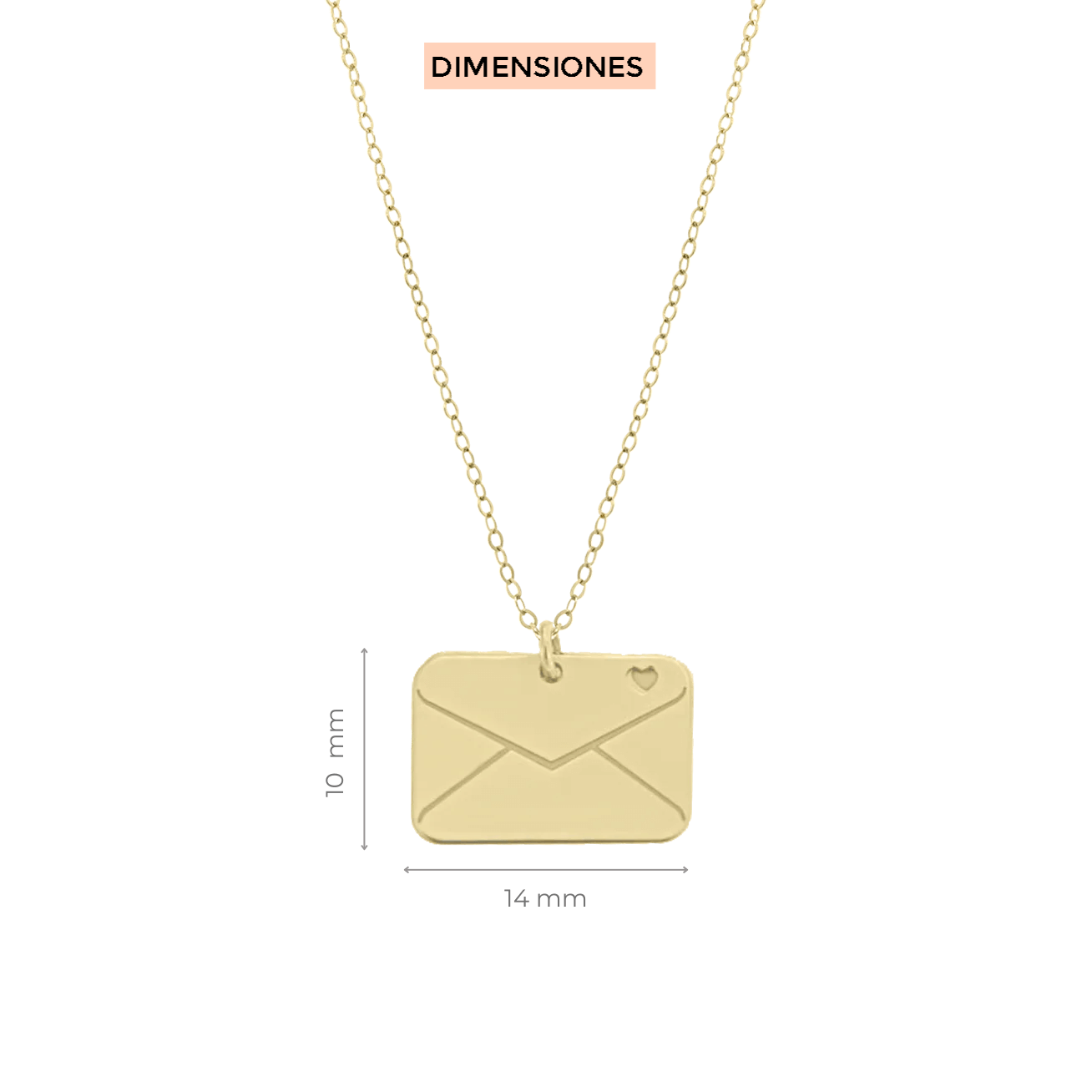 Dimensiones: 14 mm x 10 mm. Cadena de 45 cm, con extensión de 3 cm.