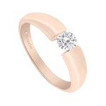 Solitario Ale, impacta con este diseño sofisticado, el diamante flota entre los dos brazos. Diamante central corte brillante redondo con 25 puntos de diamante. Acabado brillante.