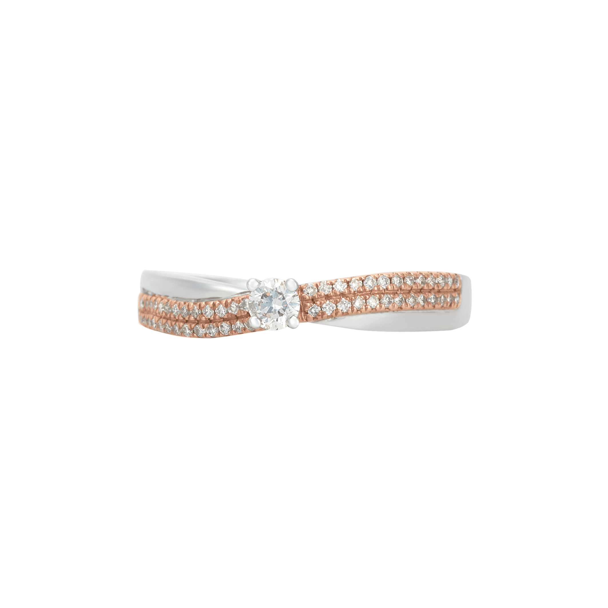 Anillo de compromiso Cyrenne. Expresa tus sentimientos con este anillo de compromiso único y elegante. Diamante central corte brillante redondo con 10 puntos de diamante natural acompañado de 12 puntos laterales. 22 puntos de diamante natural totales. Acabado brillante y rodizado.