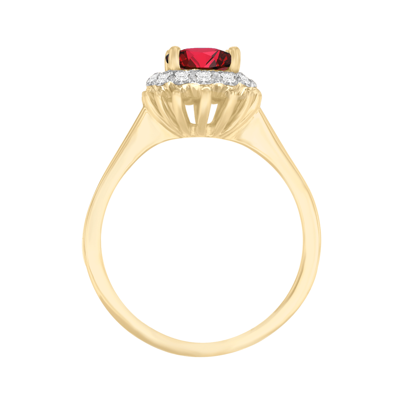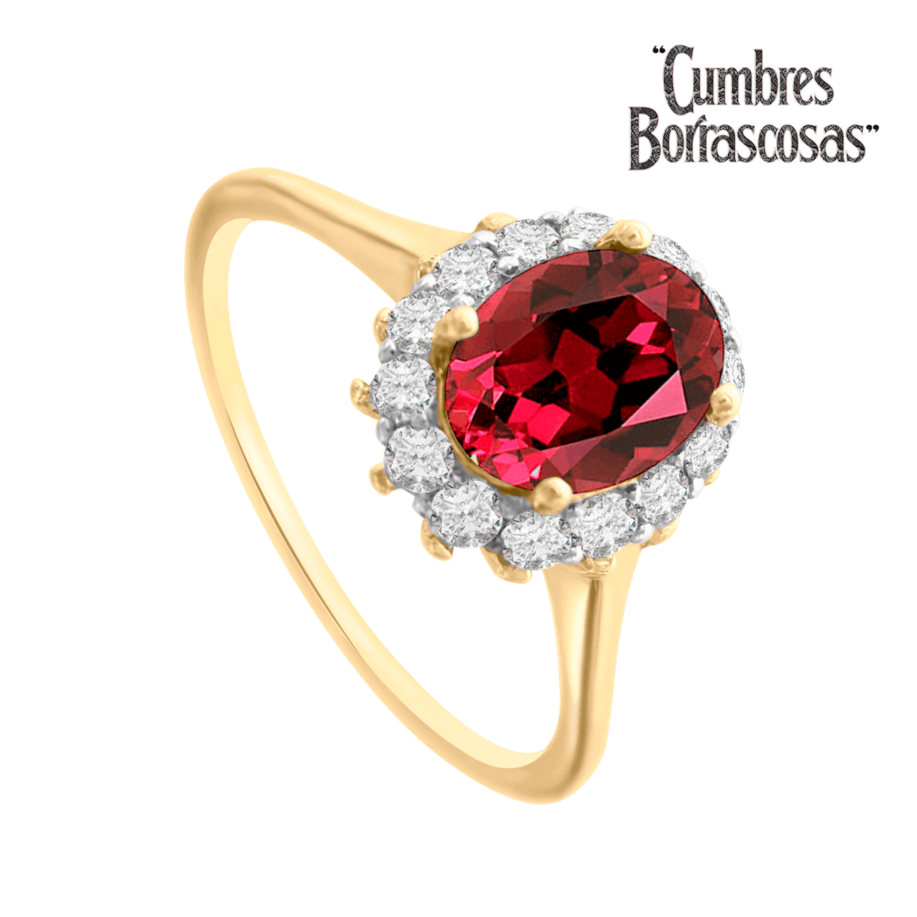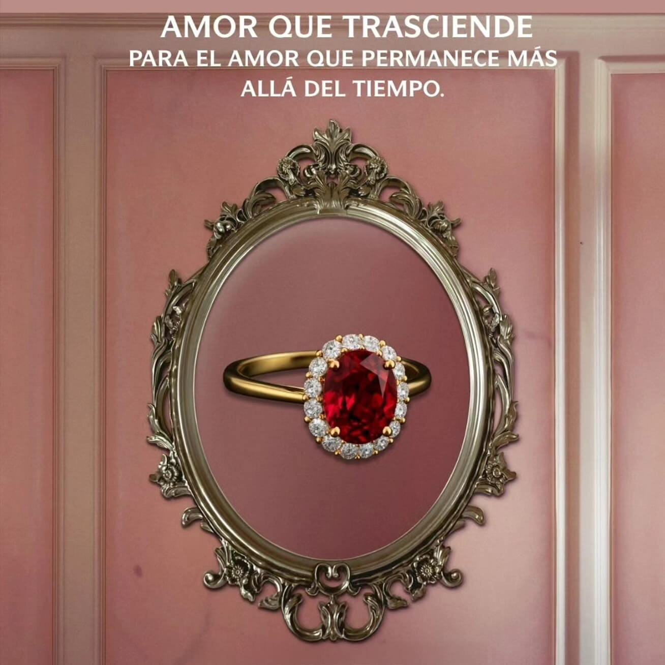 Anillo Amor que Trasciende con rubí natural corte oval y 36 puntos de diamante corte brillante. Acabado brillante y platinado.