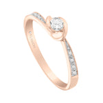 Anillo de compromiso Chiara, diseño romántico y exquisito. Diamante central corte brillante redondo con 15 puntos de diamante y laterales con 4 puntos de diamante. 19 puntos totales. Acabado brillante.