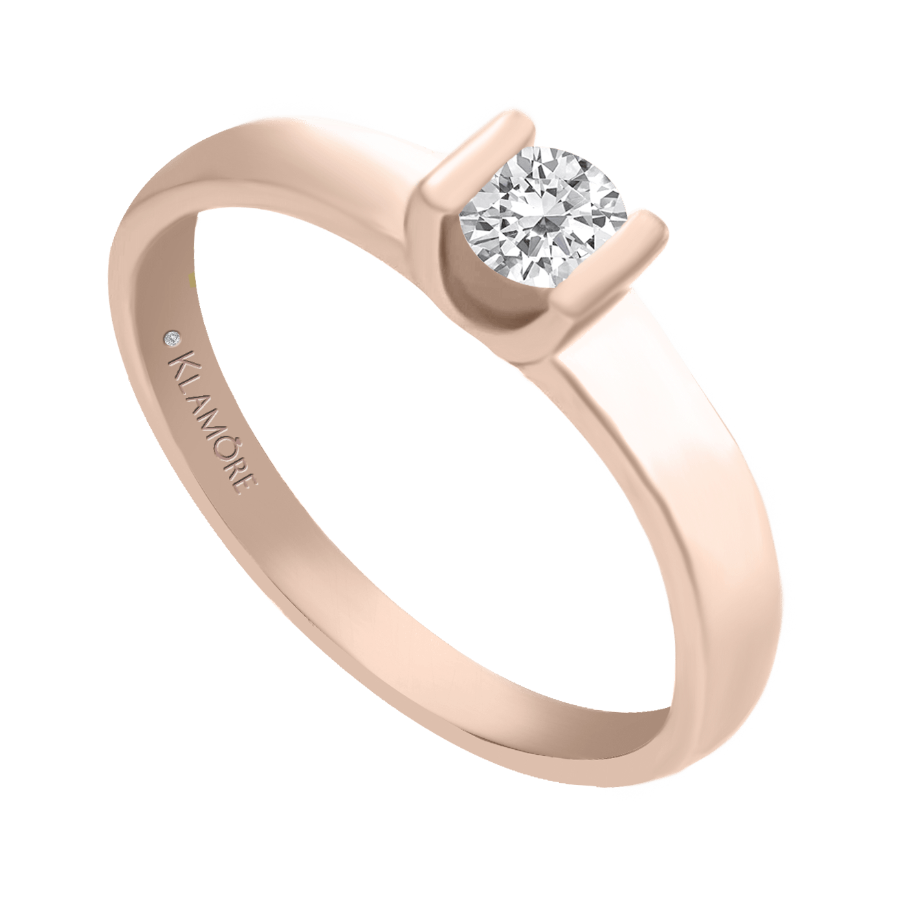 Solitario Purezza, moderno y sofisticado, el diamante es sostenido a presión y permite lucir el colet al verlo de costado. Diamante central con 40 puntos de diamante corte brillante redondo. Claridad SI, Color G-H. Acabado brillante.