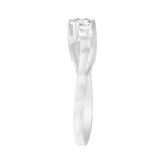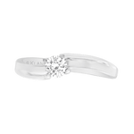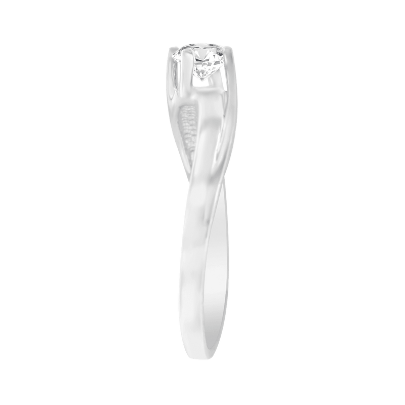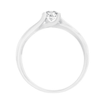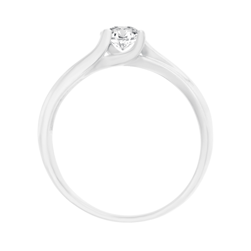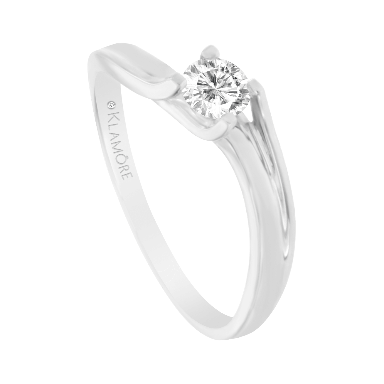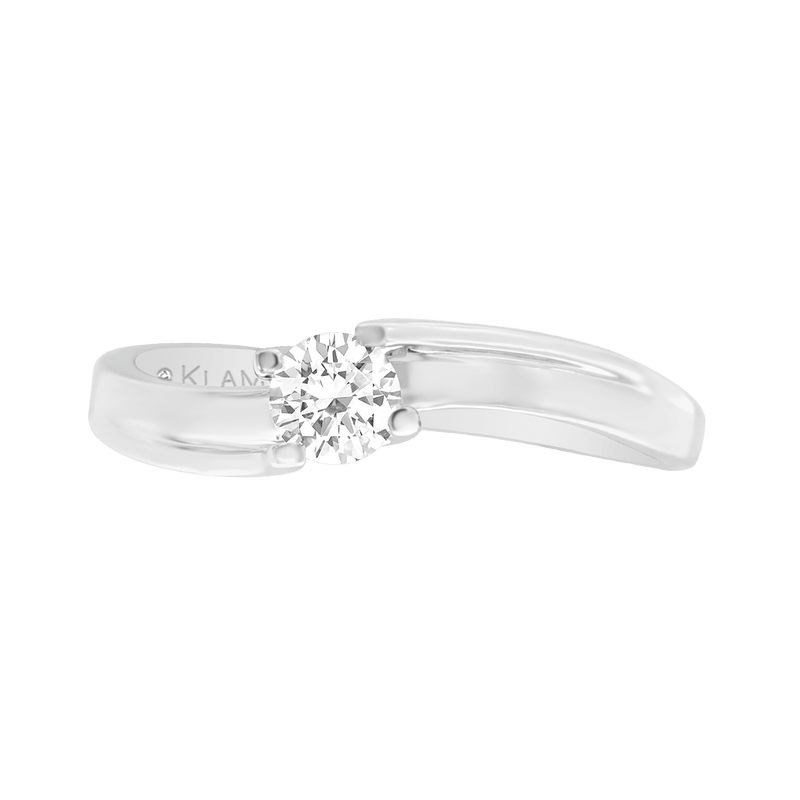Solitario Raiza, sella tu promesa eterna con este lindo diseño. Diamante central corte brillante redondo con 30 puntos de diamante. Claridad SI, Color G-H. Acabado brillante y platinado.