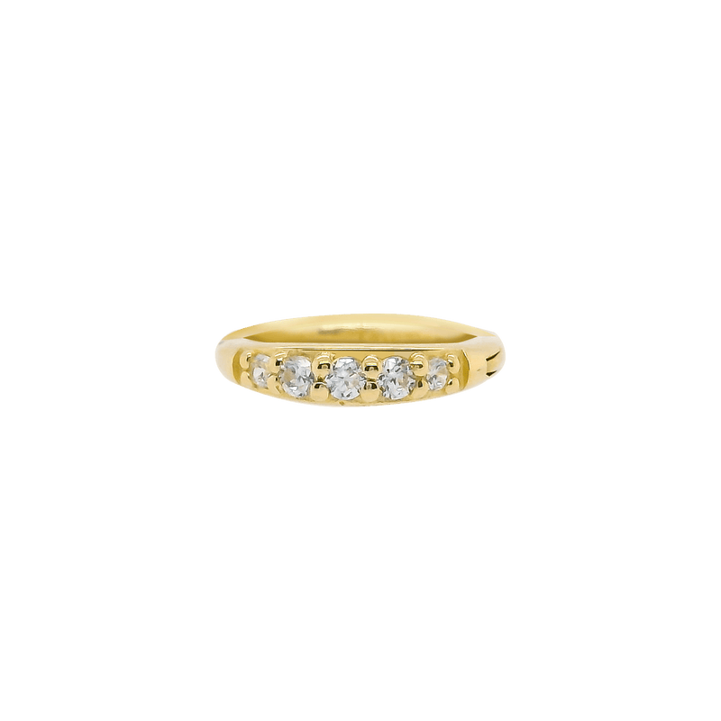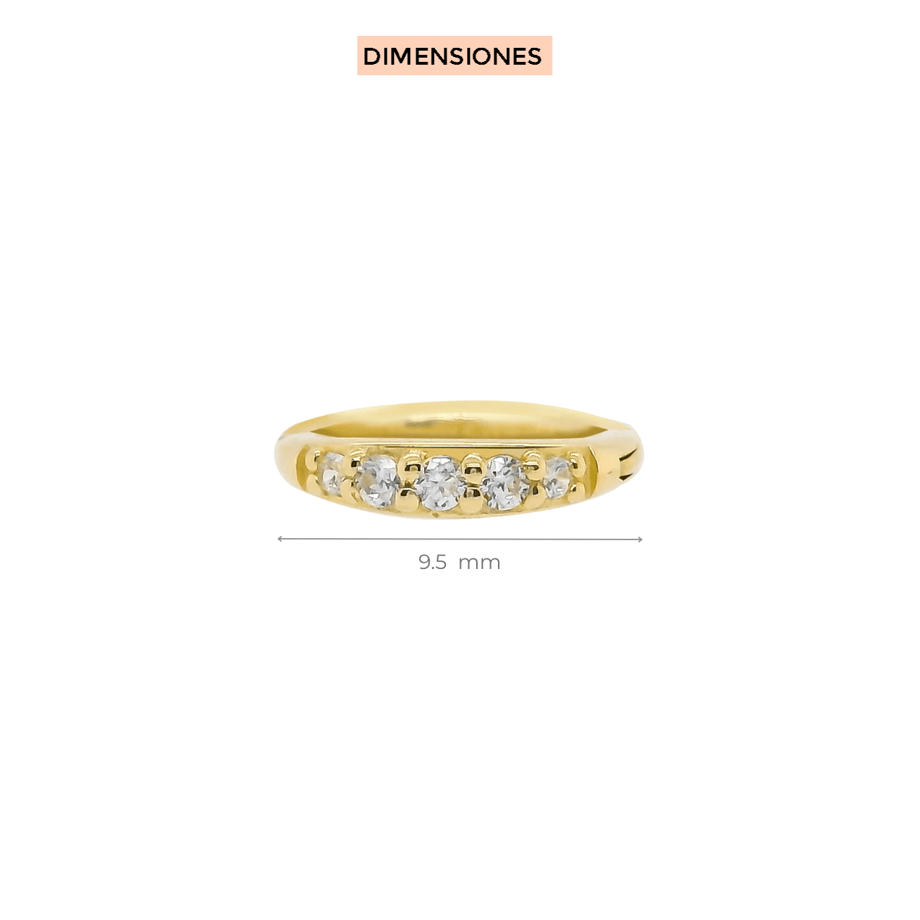 Piercing en oro de 14k. Su forma circular lo convierte en un accesorio clásico y atemporal, mientras que las circonias corte redondo al centro añaden un destello de lujo y glamour.